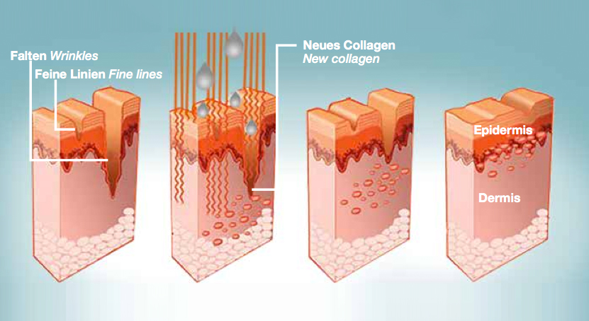 - Die neuen Collagene bewegen sich in Richtung Hautoberfläche und reduzieren dort feine Linien und Falten.
